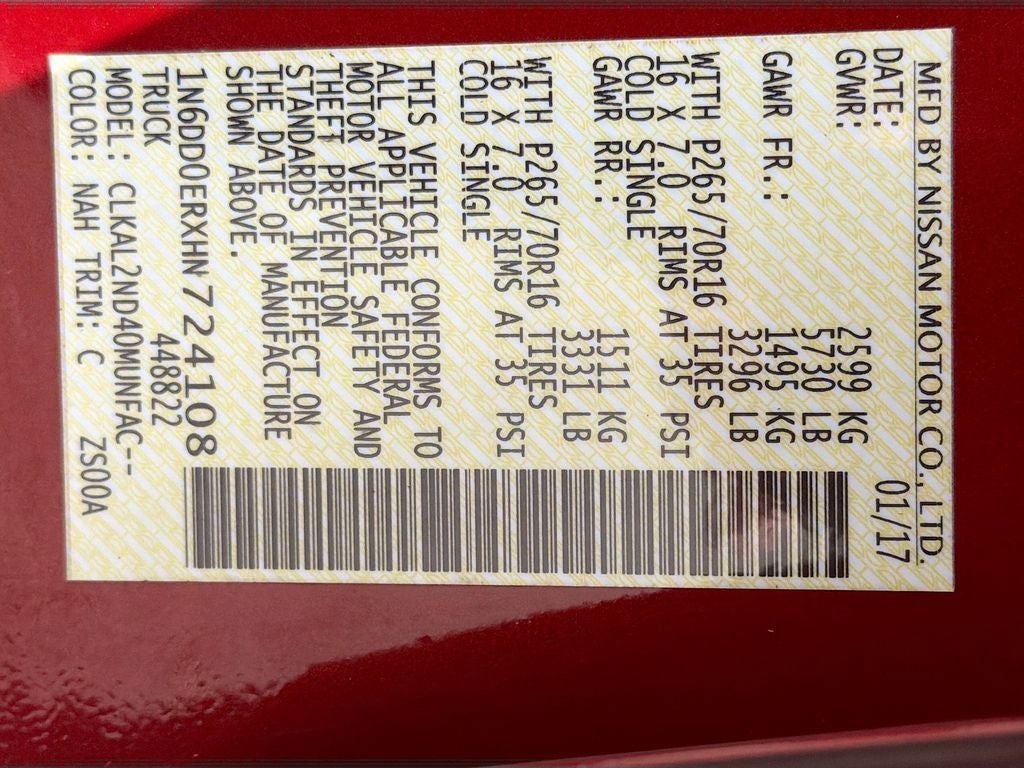 2017 Nissan Frontier SV W/SUNROOF