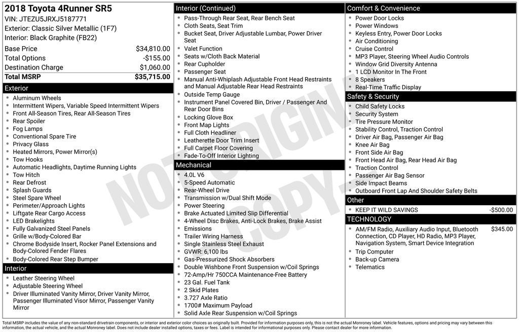 - Vehicle Name: Toyota 4Runner