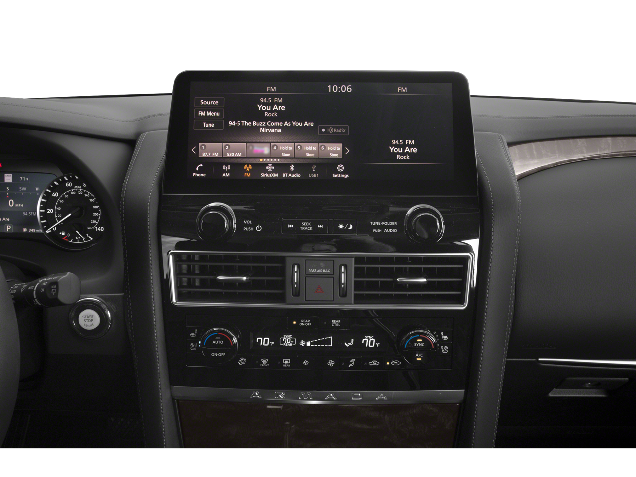 - Radio: NissanConnect w/SiriusXM -inc: 13-speaker Bose audio system, wireless Apple CarPlay, Android Auto, Nissan door to door navigation, 12.3" color display w/multi-touch control, SiriusXM Traffic and Travel Link w/3 month complimentary trial access, NissanConnect services powered by SiriusXM, Bluetooth® hands-free phone system, hands-free text messaging assistant and Wi-Fi hotspot