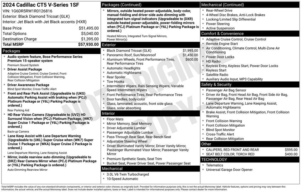 Black Diamond Tricoat 2024 Cadillac CT5 V-Series RWD 10-Speed Automatic 3.0L V6