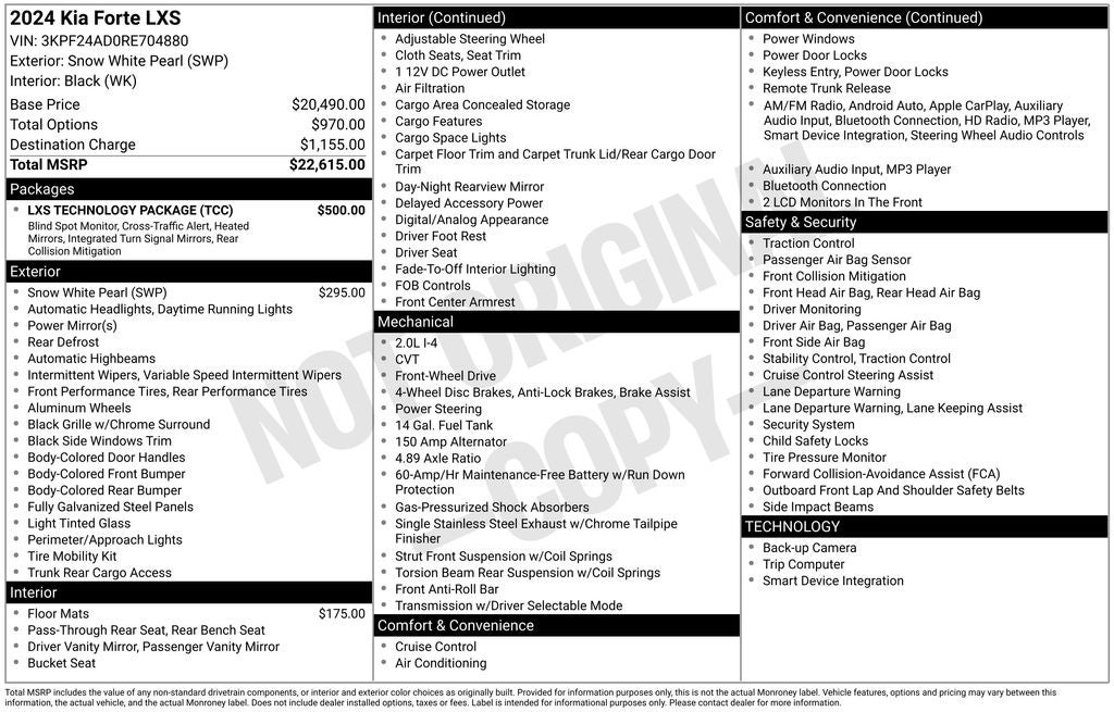 - Vehicle Name: Kia Forte
